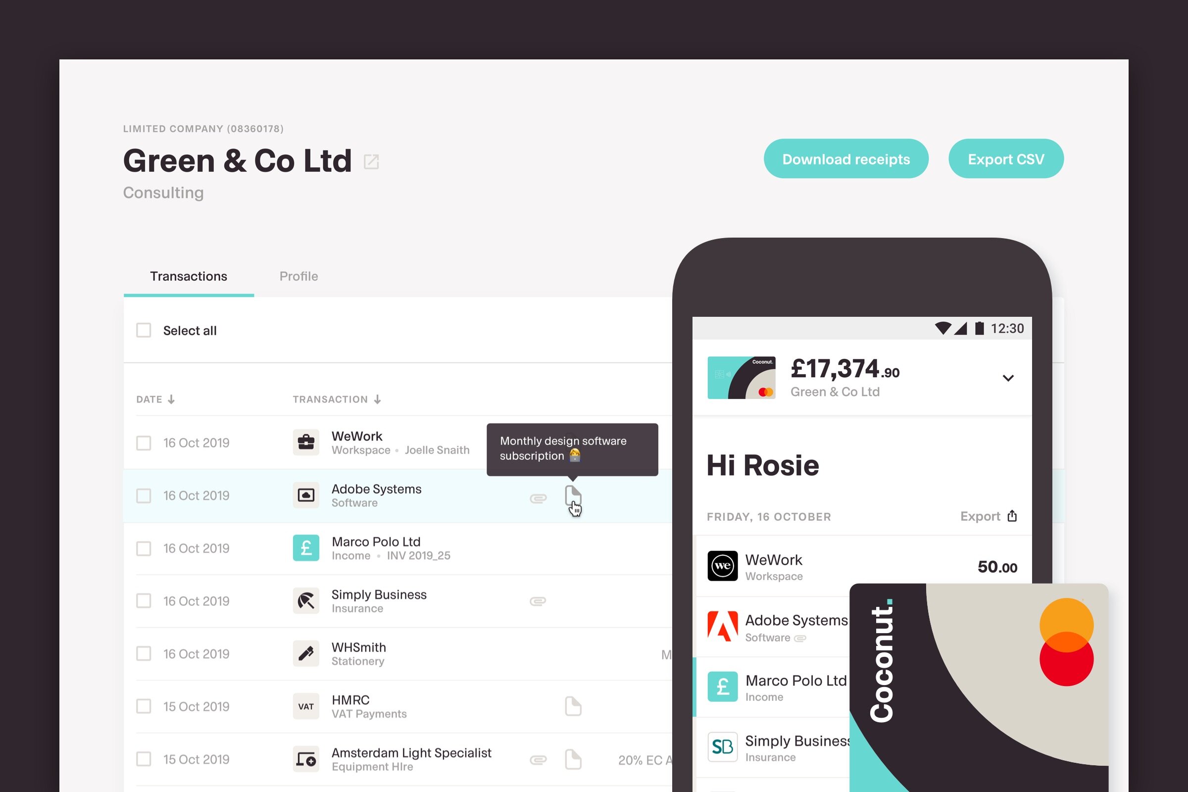Customers can create, send and track invoices within the app, with automatic payment reconciliation when matching payments entered their Coconut account.