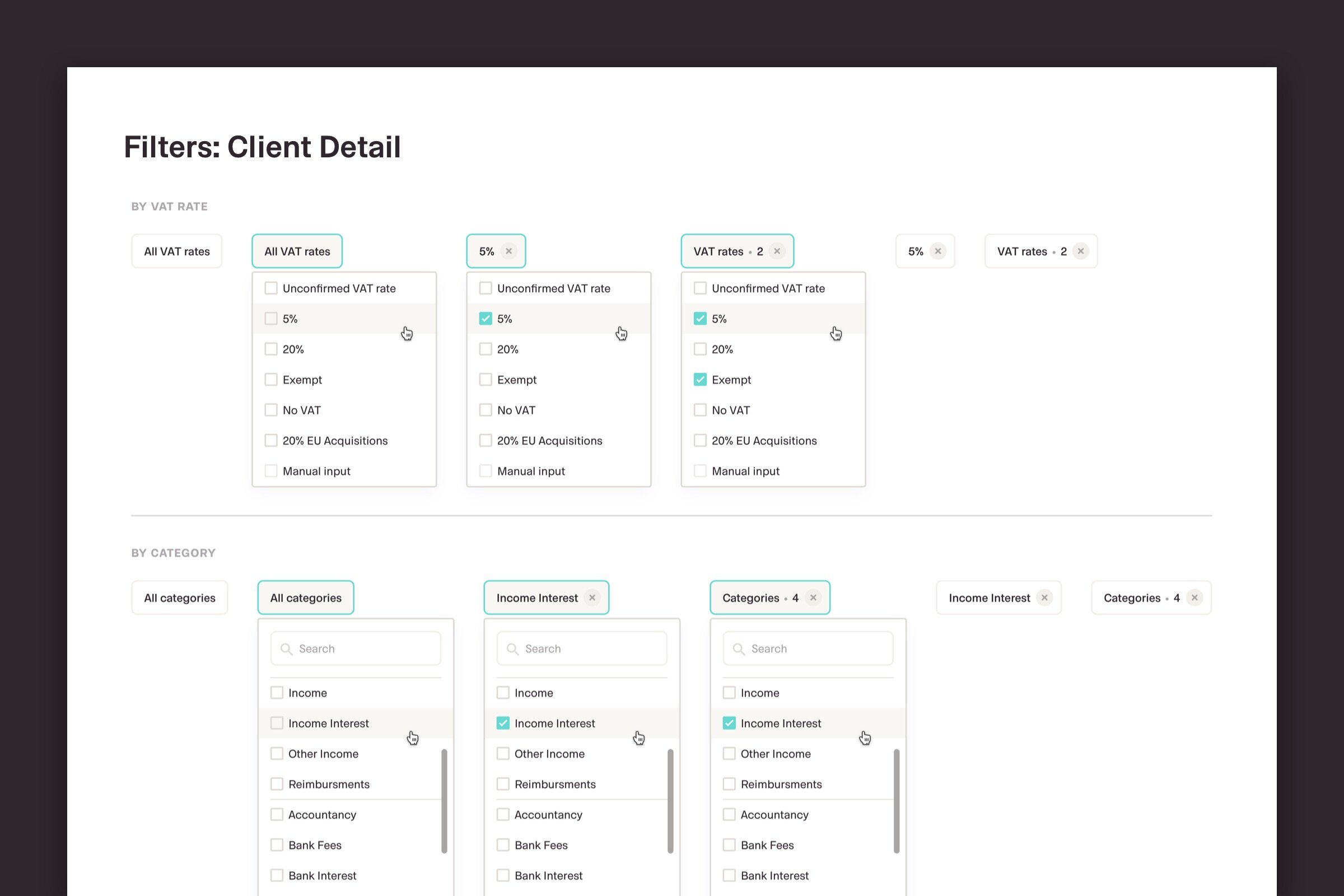 A key design challenge was creating account setup flows that correctly categorised transactions based on user type (Sole Trader vs Limited Company) and account type (business vs personal), ensuring accurate tax calculations and VAT suggestions.